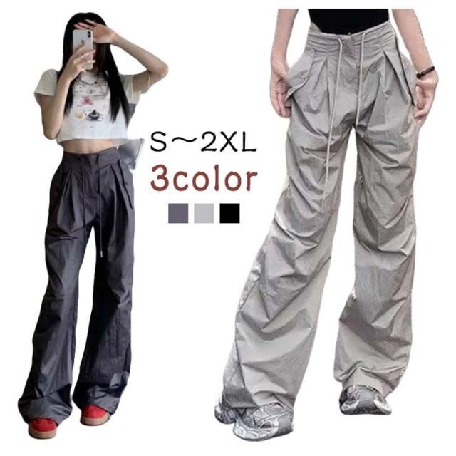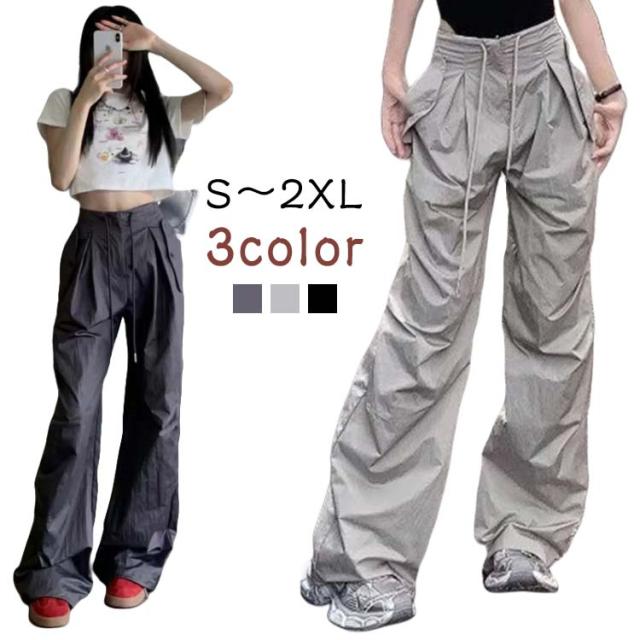 カーゴパンツ スポーツ カジュアル 春 レディース ロングパンツ 軽量 夏 速乾 ハイウエスト アメカジ カーゴパンツ ズボン ボトムス 黒 グレー ブラック 大きいサイズ 送料無料 ゆったり 体型カバー
