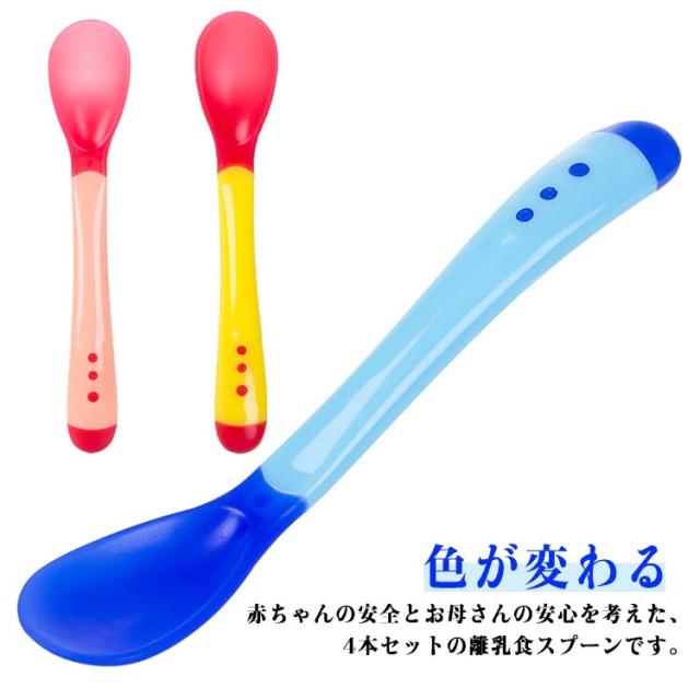 色が変わる 温度感知 離乳食 離乳食スプーン 温感スプーン ベビースプーン 赤ちゃん 離乳食 スプーン フィーディングスプーン ベビー食器 4本セット お食事 ギフト プレゼント