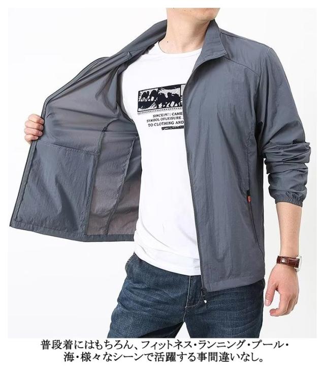パーカー ジップアップパーカー 海 メンズ UVカット 接触冷感 パーカー 吸水速乾 スタンドカラー 春夏 UVパーカー ラッシュガード 薄手 長袖 サマージャケット ひんやり 涼しい スポーツ プール パーカー カジュアル