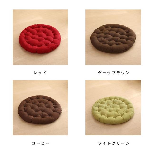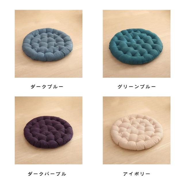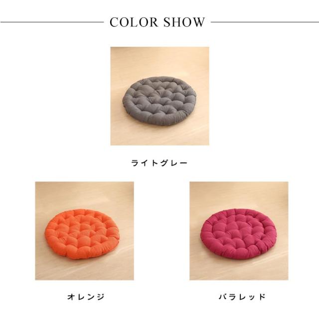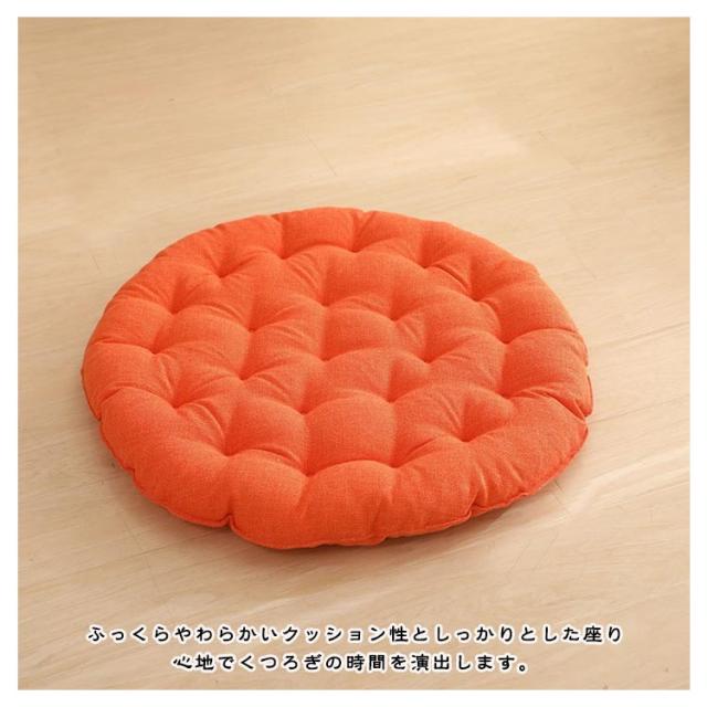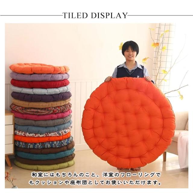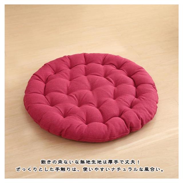 | 直径65cm!大きいサイズの丸型座布団! 和室にはもちろんのこと、洋室のフローリングでもクッションや座布団としてお使いいただけます。 時には、背もたれ用やまくらとしても使える優れもの。 直径65cm、厚さ10cm、大きなラウンド型クッションは胡坐をかいても、ゆったりボリュームのある大きいサイズです♪ まんまるかわいいフォルムは、インテリア上級者やお部屋をすっきりみせたいあなたにピッタリ。 ふっくらやわらかいクッション性としっかりとした座り心地でくつろぎの時間を演出します。 飽きの来ないな無地生地は厚手で丈夫!ざっくりとした手触りは、使いやすいナチュラルな風合い。 11色から選べる豊富なカラーバリエーションで、季節や部屋の雰囲気に合わせて、自分らしいコーディネートが楽しめます。 | |