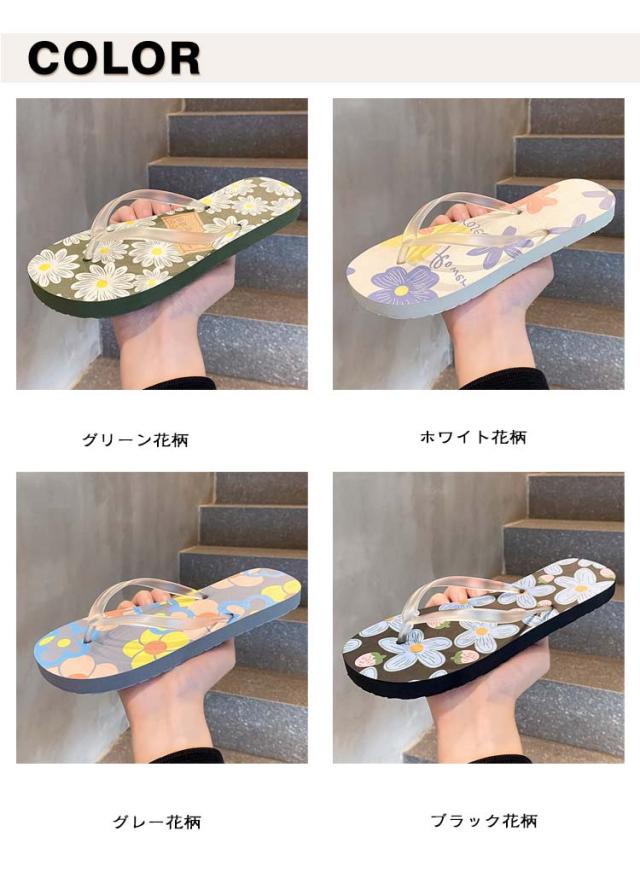 ビーチサンダル トングサンダル シンプル ぺたんこ 無地 花柄 細ストラップ トングサンダル スリッパ ローヒール フラット カジュアル 軽量 履きやすい 歩きやすい 海 レジャー
