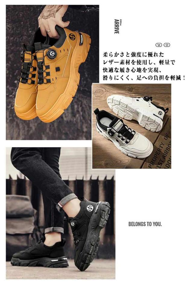 | 履きやすいメンズスニーカー 柔らかさと強度に優れたレザー素材を使用し、軽量で快適な履き心地を実現、滑りにくく、足への負担を軽減! 長時間履いていても快適です。 機能性とデザイン性を兼ね備え、履きやすく、足を包むインソールには、衝撃を吸収するクッションがついており、長時間歩いても疲れにくい。 深溝パターンの個性的なデザインの滑り止め加工、高摩擦ラバー素材で滑り止め性能がアップし、快適な歩き心地です。濡れた岩場や滑りやすい路面でもグリップ力が高く、使いやすい。衝撃吸収をサポートし、履き心地で疲労感を軽減、一日履いても疲れにくいです。 | |
