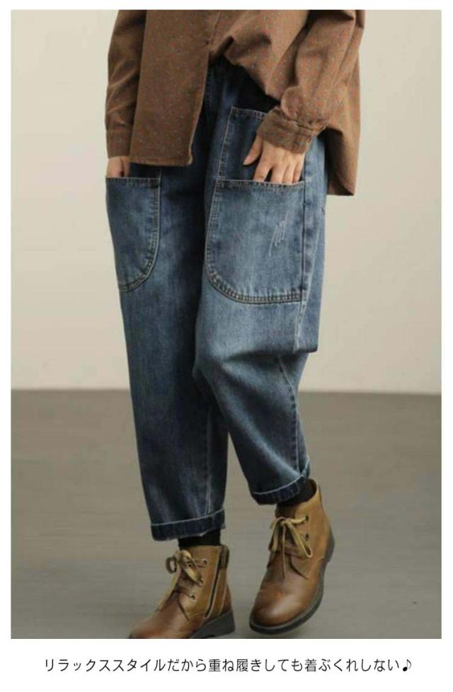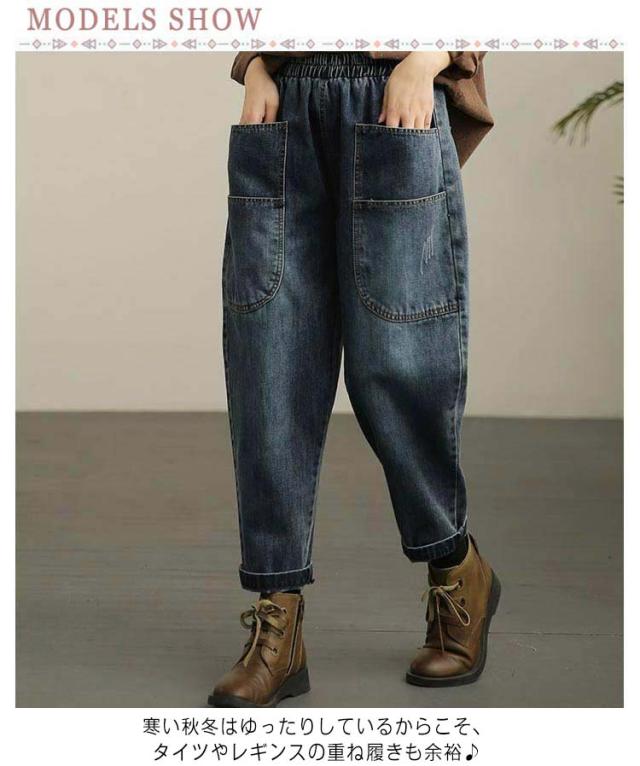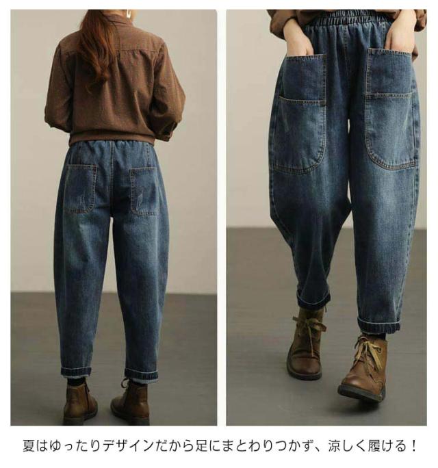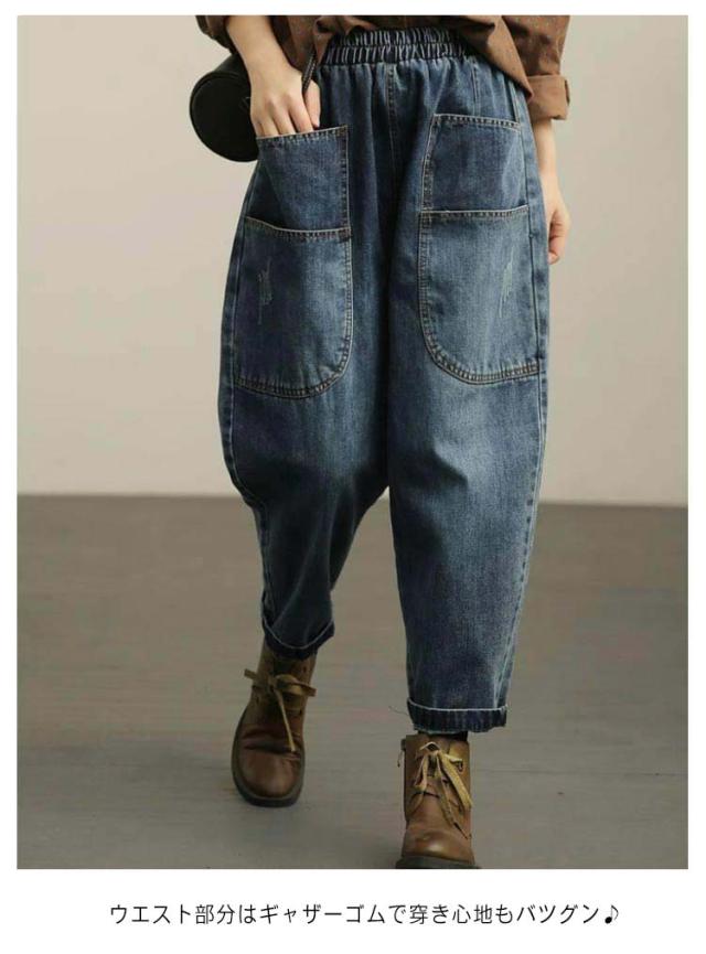 サルエル サルエルデニムパンツ ゆったり サルエルデニムパンツ サルエル レディース デニム 動きやすい ウエストゴム デニムパンツ 体型カバー 春 夏 秋 冬