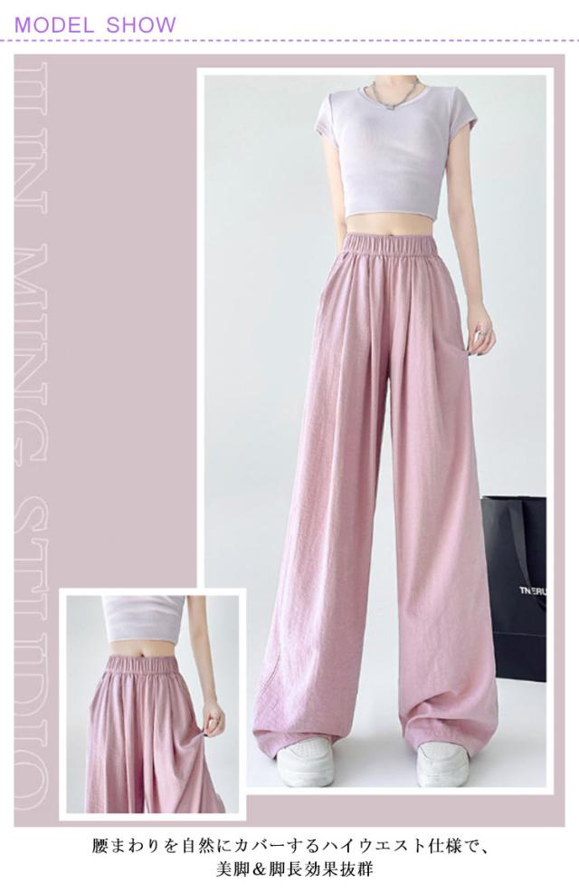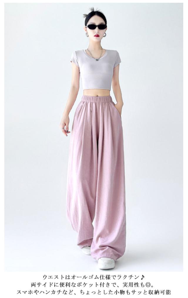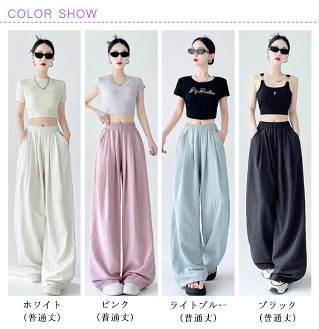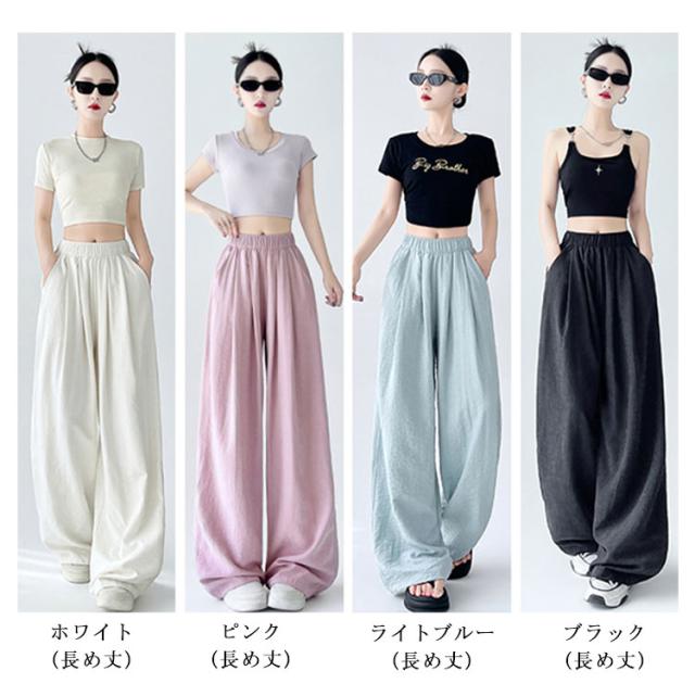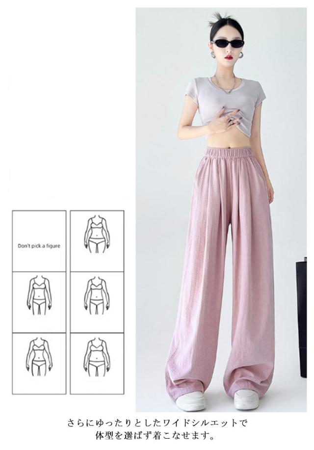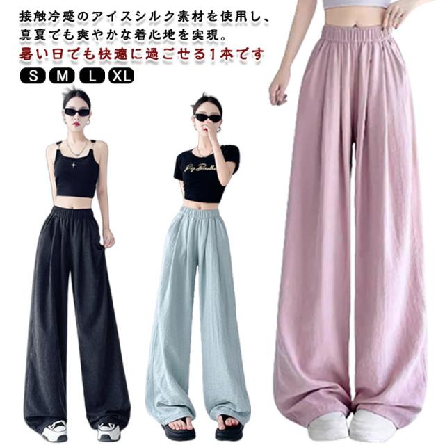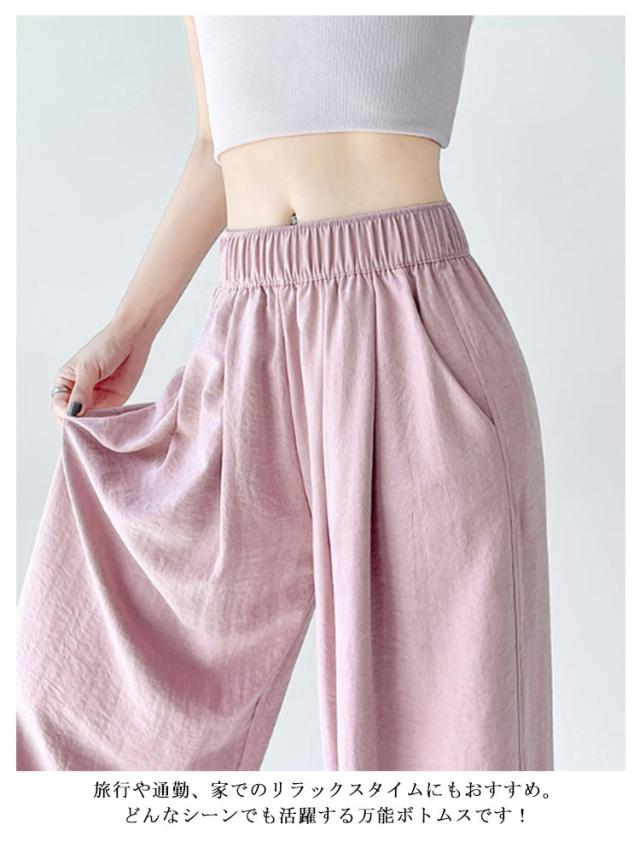 接触冷感 美脚 春夏 薄手 ゆったり 夏用 体型カバー ワイドパンツ 韓国ファッション ハイウエスト レディース ルームウェア 部屋着 リラックス 無地 ウエストゴム 通勤 カジュアル ポケット付き きれいめ 涼感 ワイドパンツ 普通丈