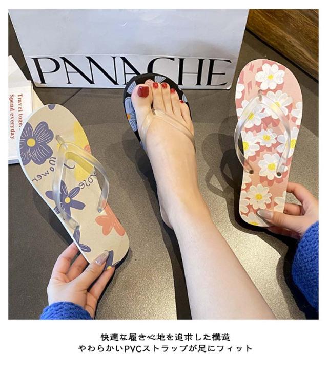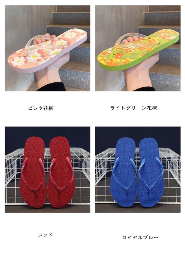 ぺたんこ トングサンダル フラット ローヒール レディース 花柄 スリッパ シンプル 無地 トングサンダル 細ストラップ カジュアル 軽量 履きやすい 歩きやすい 海 レジャー