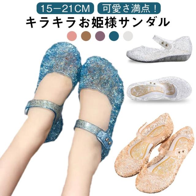 子供靴 19cm クリスタルサンダル 女の子 サマーシューズ 滑り止め お姫様 サンダル つま先ガード フラットサンダル マジックテープ 子供サンダル 夏靴 15cm 16cm 17cm 18cm 子供サンダル 20cm 21cm