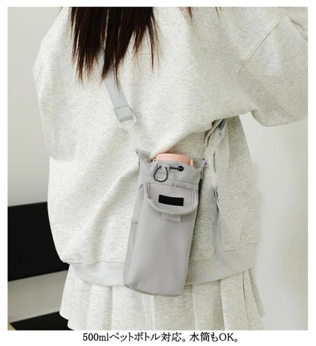 | おしゃれに持ち歩く、ショルダー付き 布製ペットボトルホルダー ナチュラルな風合いと優しいカラーで、ファッションにも自然になじむデザイン 撥水加工素材で、急な雨や結露にも安心 500mlペットボトル対応。水筒もOK フロントポケット付き:スマホや鍵、小物を収納可能 ドローストリング仕様:しっかりホールド、落下防止にも ショルダーストラップ調整可:斜めがけも、肩がけもラクラク 軽量&スリムで持ち運び快適! | |