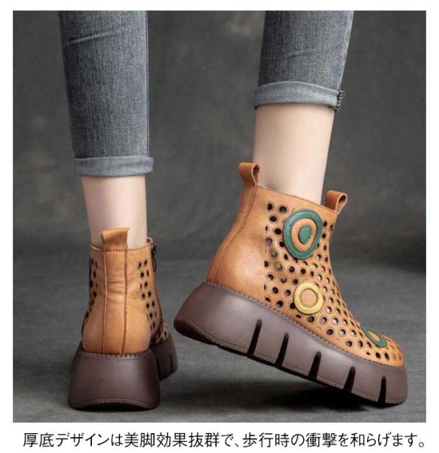 厚底 レディース サマーブーツ 透かし サンダル エスニック メッシュ ブーツサンダル 通気性 サンダルブーツ 夏用 レディース レディースシューズ ブーツ 歩きやすい