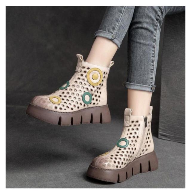 | 夏の新作、エスニック風厚底サマーブーツが登場! 透かし模様で通気性に優れ、夏でも涼しく快適な履き心地。 厚底デザインは美脚効果抜群で、歩行時の衝撃を和らげます。 民族風のデザインがコーデにアクセントを加え、旅行や街歩き、フェスなど様々なシーンで活躍します♪ | |
