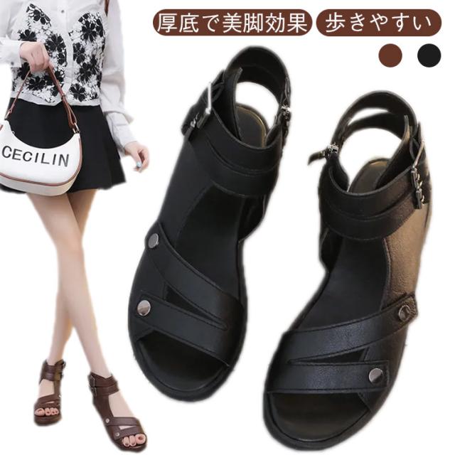 厚底サンダル サンダル ハイカット サマーブーツ 夏 夏靴 安定感 ベルト風 ブーツサンダル 歩きやすい レディース 厚底 大きサイズ ブラック ブラウン