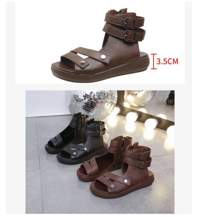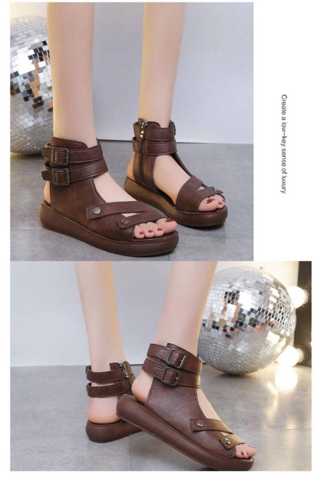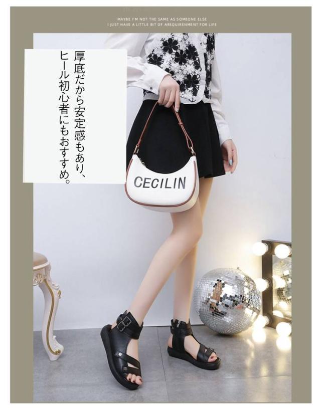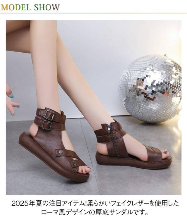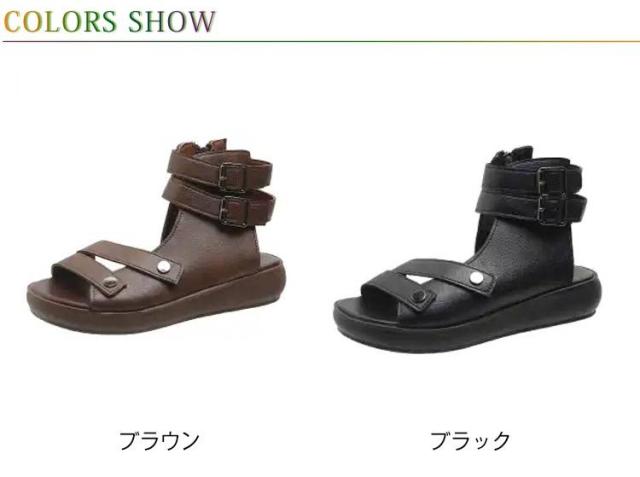 | 2025年夏の注目アイテム!柔らかいフェイクレザーを使用したローマ風デザインの厚底サンダルです。 足首までしっかり包むハイカット仕様で、しっかりとしたホールド感と美脚ラインを演出。 厚底だから安定感もあり、ヒール初心者にもおすすめ。 蒸れにくく快適な通気性で、夏のお出かけやカジュアルコーデにぴったり。 シンプルながらも存在感のある一足です。 | |
