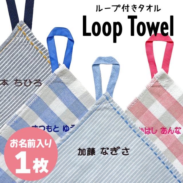 名入れ 刺繍 ループタオル 1枚 名前 キッズ 子供 男の子 女の子 ギフト ハンドタオル OR