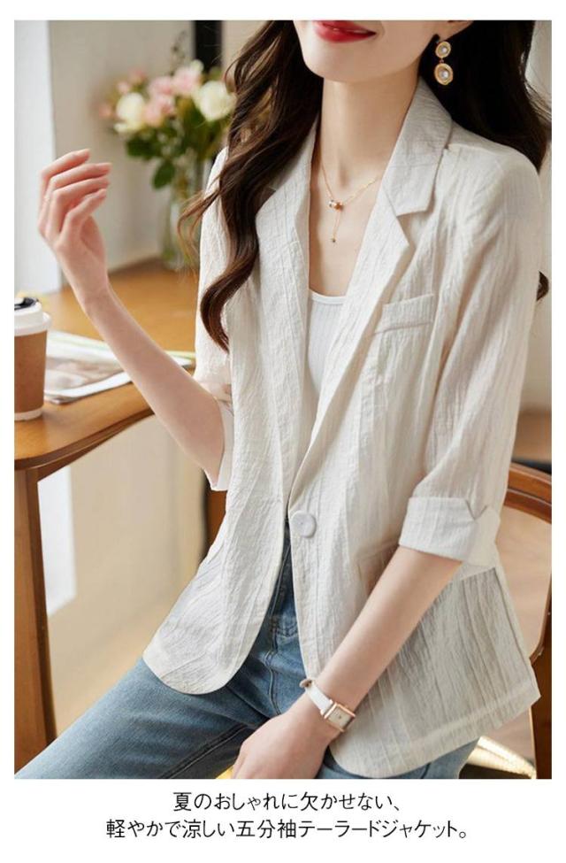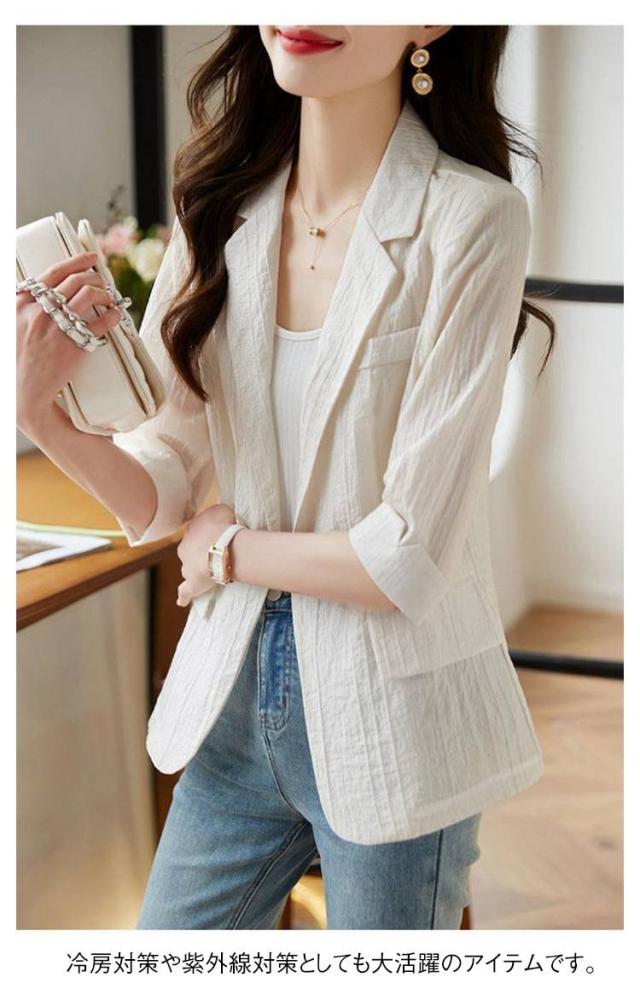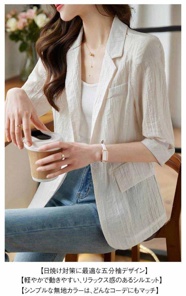 UVカット 夏服 サマージャケット 夏用ジャケット 薄手 サマージャケット 五分袖 日焼け対策 カジュアル アウター きれいめ シンプル 無地