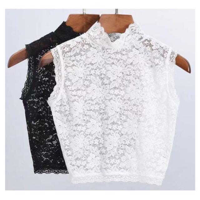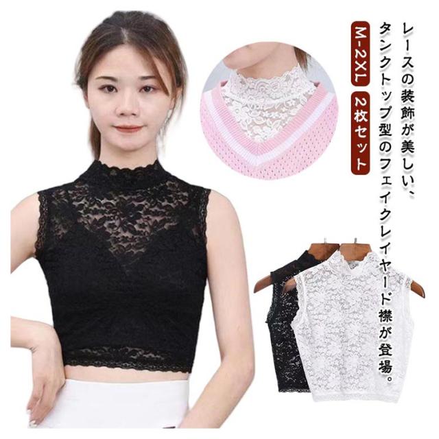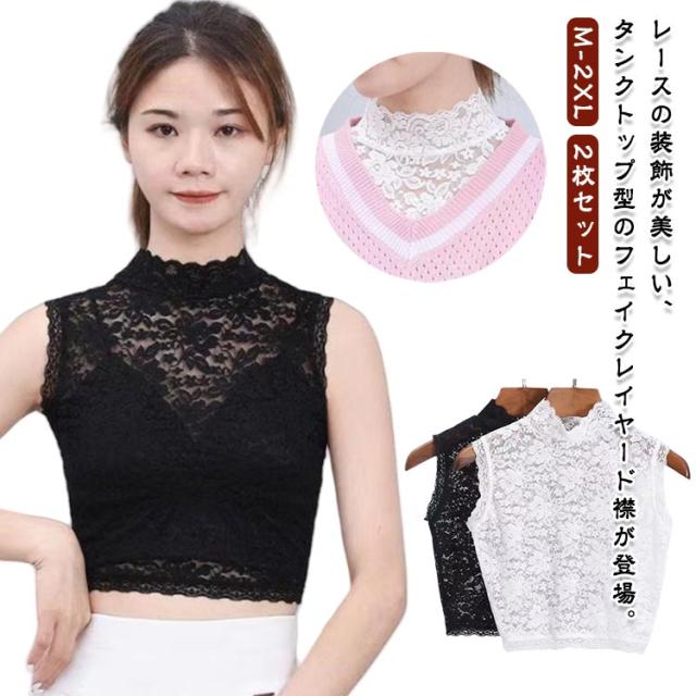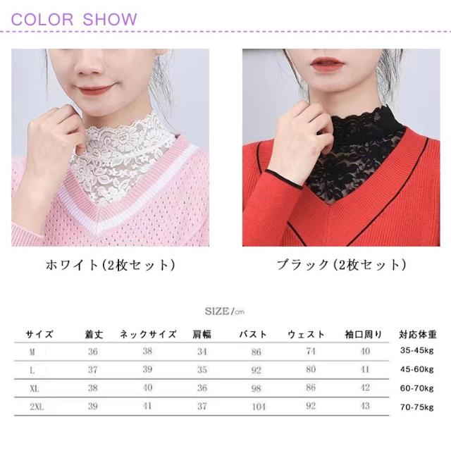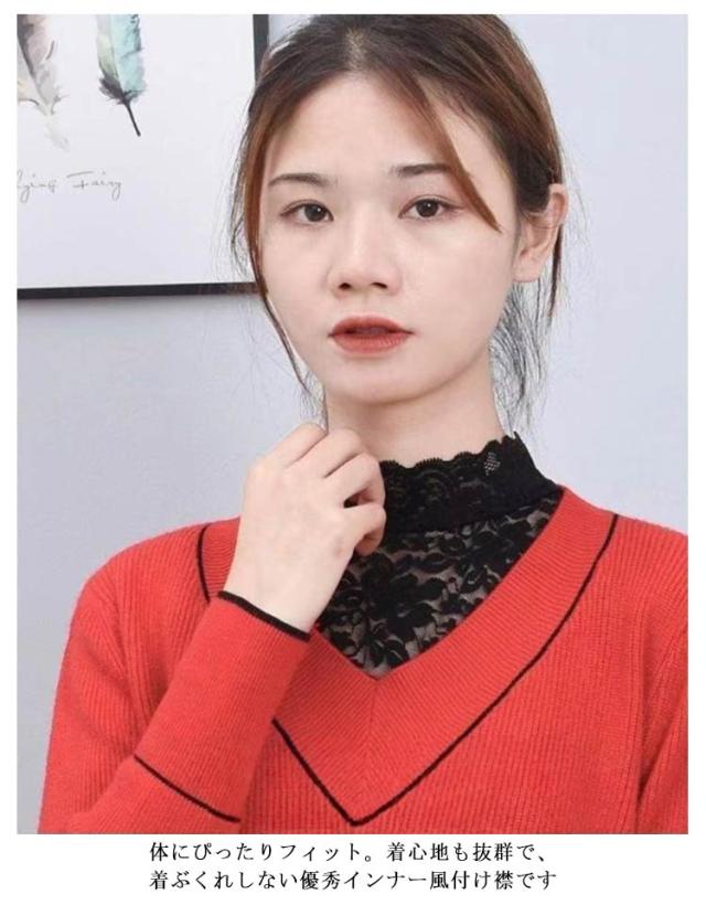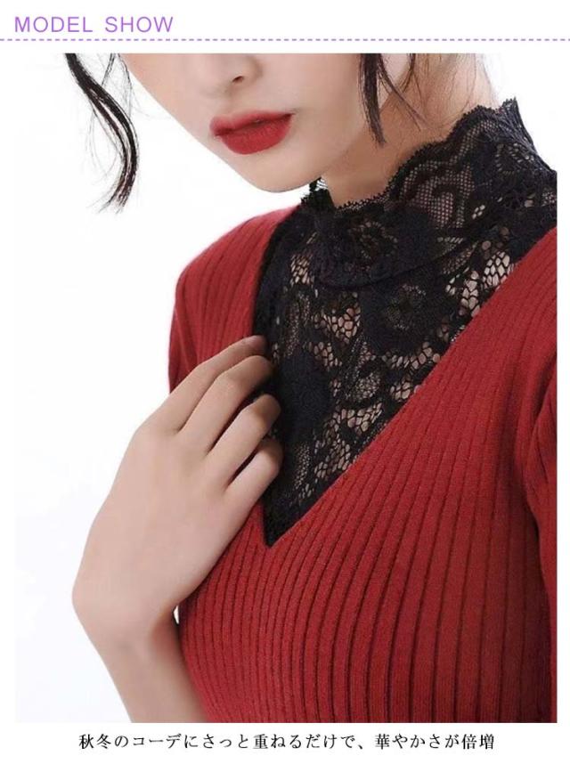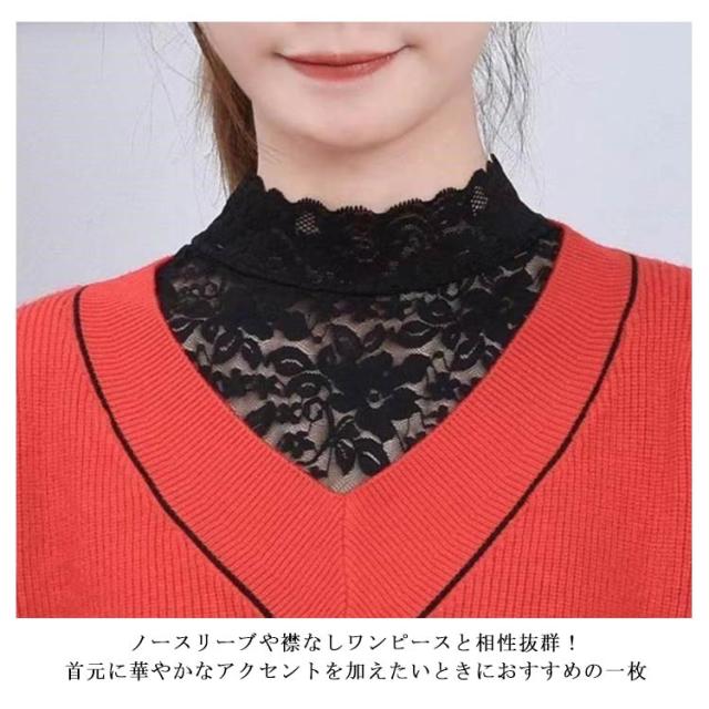 ハイネック付け襟 重ね着 レース襟 2枚セット 付け襟 透け感レース レディース 重ね着風 ハイネック 大きいサイズ ノースリーブ襟 襟元 花柄レース 秋冬 フリル付き襟 付け襟 重ね着風 可愛い 着痩せ効果 無地 ブラック