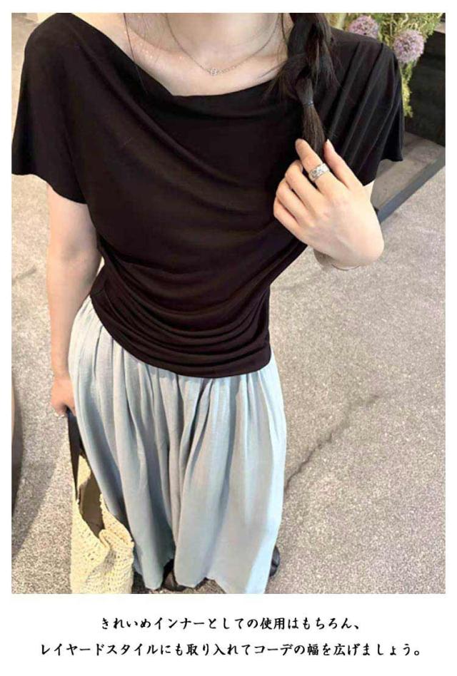 レディース 春夏 肩出し 夏 半袖 オフショルダー おしゃれ ワンショルダー ワンショル オフショル トップス デコルテ Tシャツ 鎖骨 カジュアル Tシャツ Tシャツ 夏 ギャザー 韓国