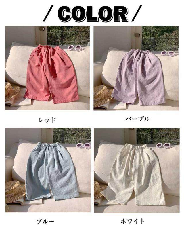 | 夏の必需品!可愛い虫除けワイドパンツ登場♪ 夏の外遊びやお散歩にぴったり! どんなトップスとも相性抜群♪ 薄手の綿素材で通気性◎、汗っかきな赤ちゃんも快適に。 ウエストゴム仕様で、着脱しやすく、お着替えもらくらく! 韓国風のカジュアルスタイルで、普段着にもおしゃれ着にも。 | |