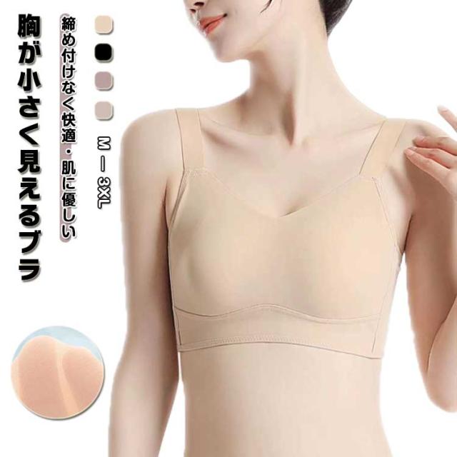 夏 ブラジャー ノンワイヤーブラ レディース 大きいサイズ 脇高 着痩せ ブラ 胸が小さく見えるブラ 胸を小さく見せるブラ 薄手 下着 ひんやり 大きな胸小さく見せる ブラジャー 補正下着 さらしブラ ノンワイヤー