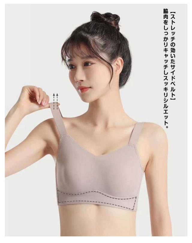 | 胸が小さく見えるブラ・締め付けなく快適・肌に優しい 脇にできる段差・胸元にできる段差をしっかり収納。 上半身をすっきり見せてくれるので着痩せ効果も抜群です。 パネルの下部でバストを下から支えて、パネル上部に分散させることで、圧迫なくバストの揺れを抑えます。 蒸れにくい小さくで薄くて軽いパッドは蒸れ熱いを防ぐので、暑い夏に使用しても息苦感じない。 【軽量でコンパクトに】丸められるので持ち運びに便利! 【ストレッチの効いたサイドベルト】脇肉をしっかリキャッチしスッキリシルエット。 | |