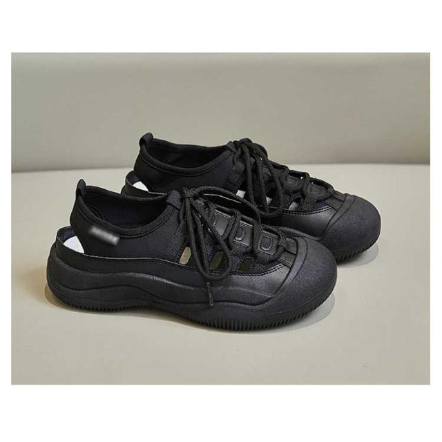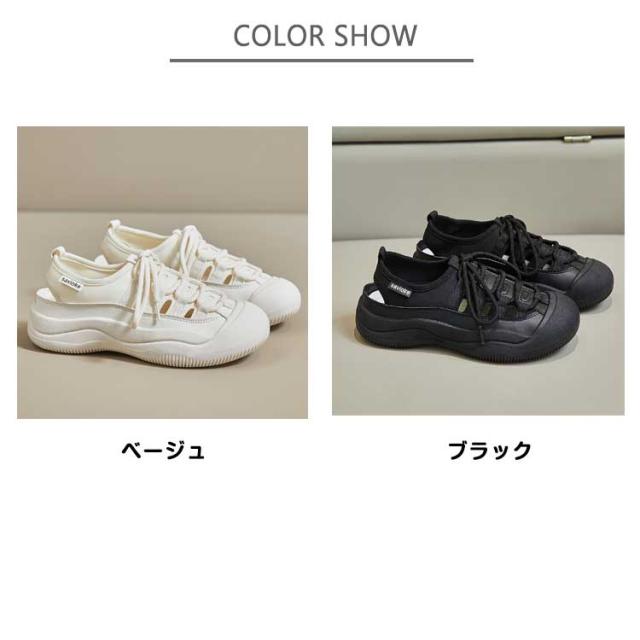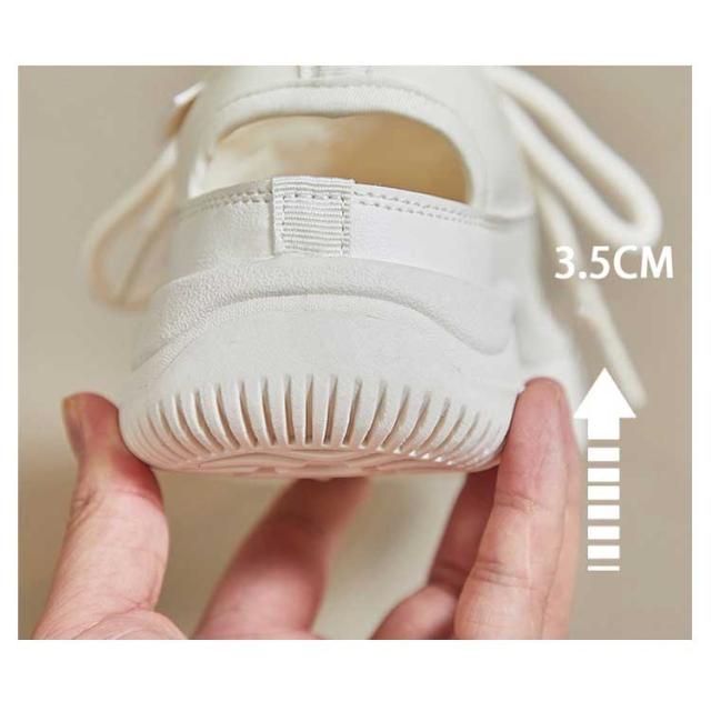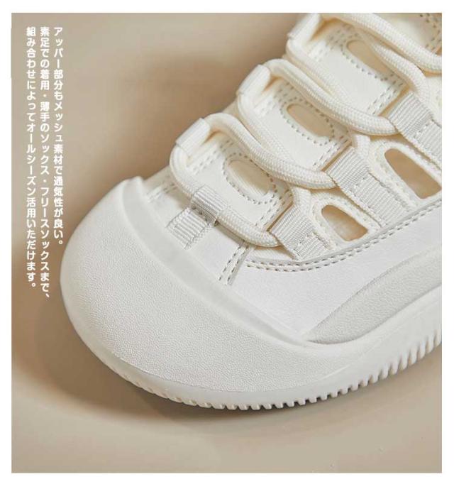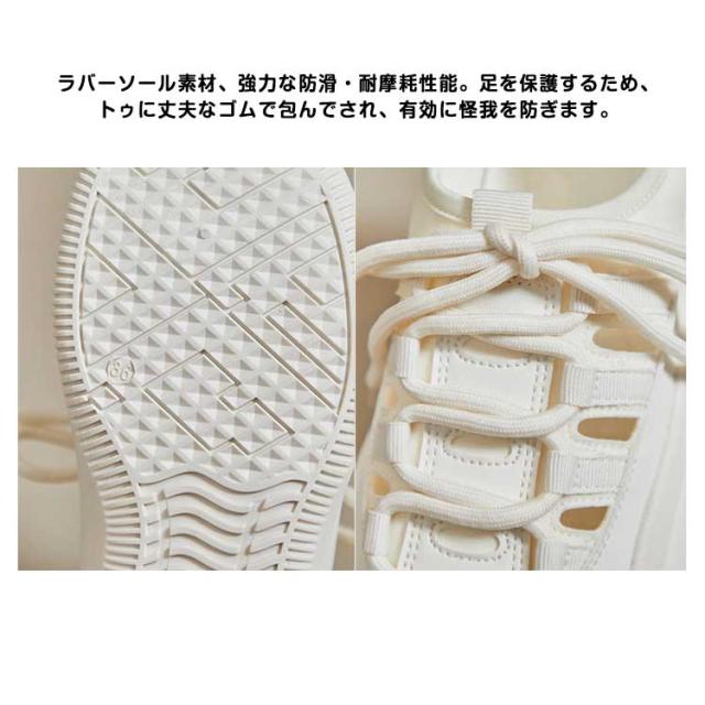 | 見た目はまるでスニーカーのようなサンダル!まるでスニーカーの様な歩きやすさ!約3.5cmの厚みがあるソールです。 このサンダルは、軽量で通気性に優れたキャンバス素材を使用しており、長時間の使用でも足が蒸れにくい設計になっています。 アッパー部分もメッシュ素材で通気性が良い。素足での着用・薄手のソックス・フリースソックスまで、組み合わせによってオールシーズン活用いただけます。 レースアップスタイルは、足にぴったりとフィットするよう調整可能で、安定した歩行をサポートします。 ラバーソール素材、強力な防滑・耐摩耗性能。足を保護するため、トゥに丈夫なゴムで包んでされ、有効に怪我を防ぎます。 このサンダルは、忙しい毎日を過ごす現代女性にとって、快適さとファッションを両立させるための理想的な選択肢です。 春~秋のウォーキングに最適。キャンプ、フェス、川や海などの水辺でのアウトドアから、毎日の散歩や、雨の日のお出かけなど、数多くのシーンで活躍する。 | |