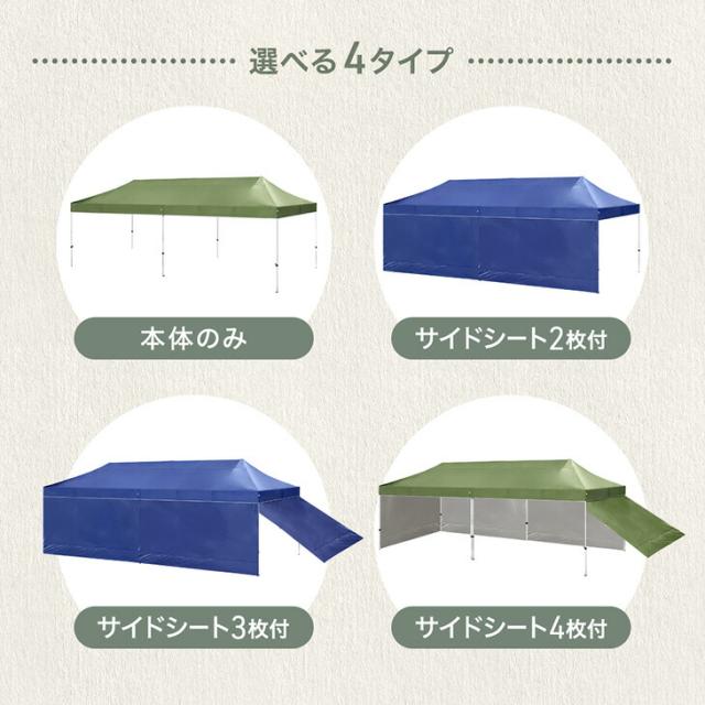 超大型 ワンタッチタープ 3×9m 収納バッグ タープ テント サイドシート 2枚 タープテント ワンタッチテント イベントテント ワンタッチ 日よけ 遮熱 耐水 頑丈 高さ調節 特大