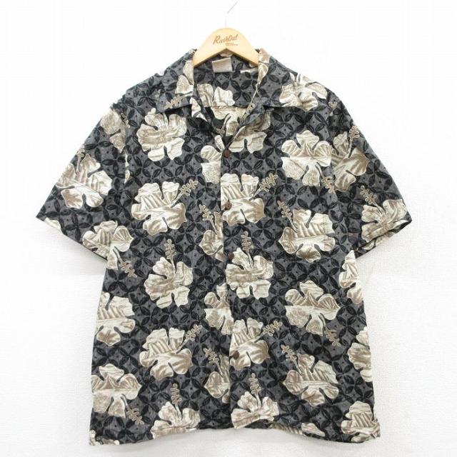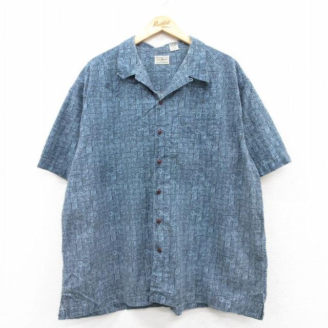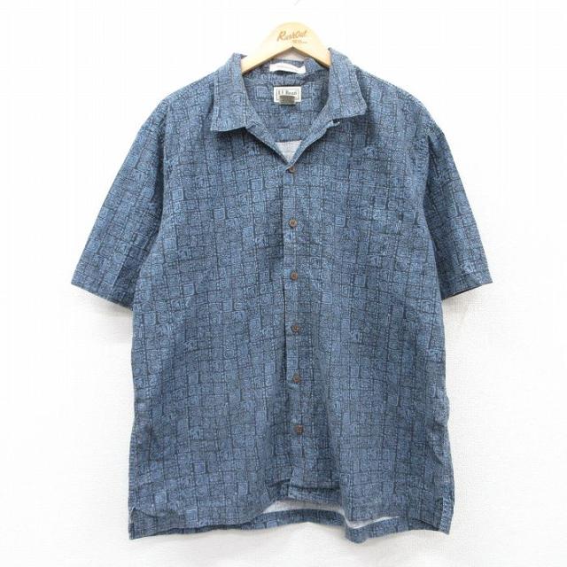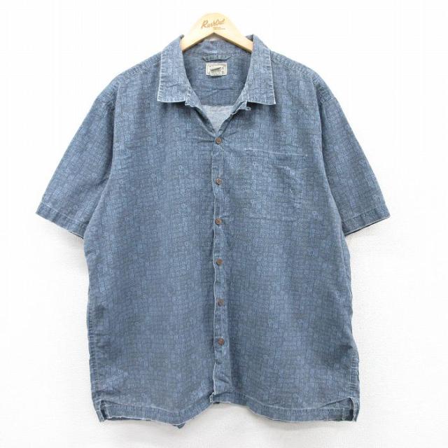 【商品名】 L★古着 半袖 ハワイアン シャツ メンズ 90年代 90s キャプテンモーガン コットン 開襟 オープンカラー USA製 青