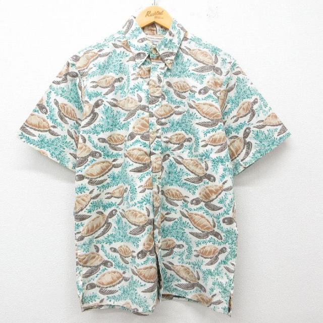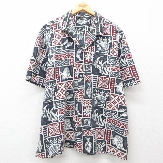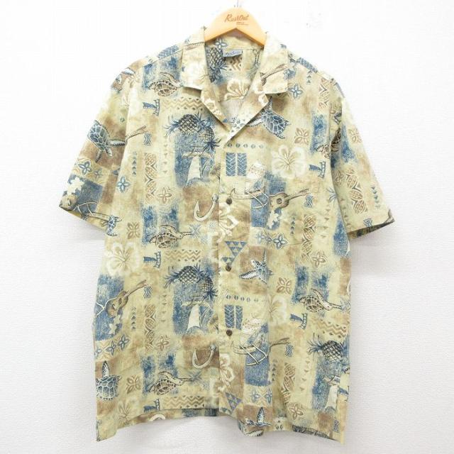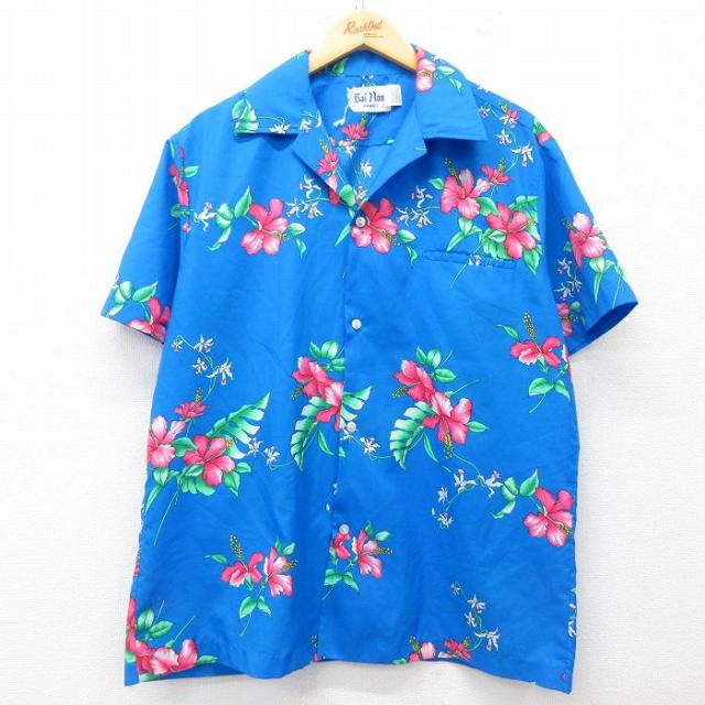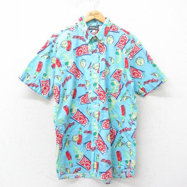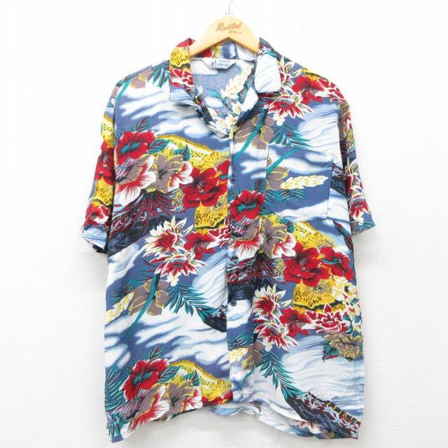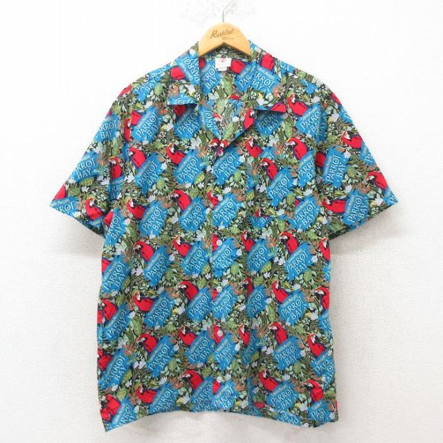 古着 半袖 ハワイアン シャツ メンズ 90年代 90s キャプテンモーガン コットン 開襟 オープンカラー USA製 青 ブルー Lサイズ 中古 古着