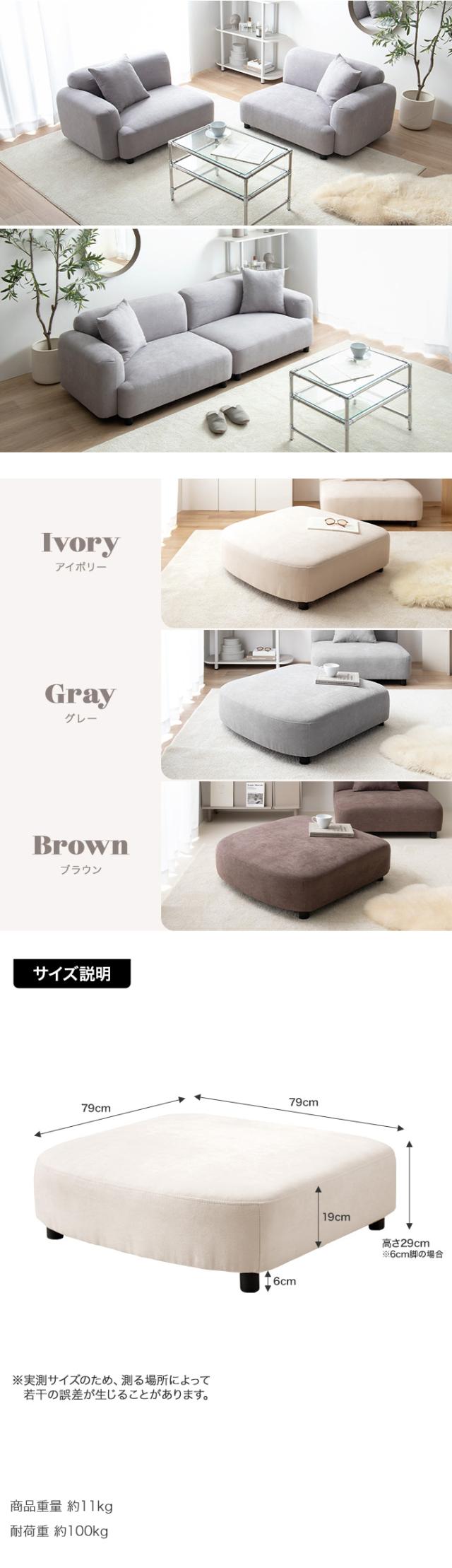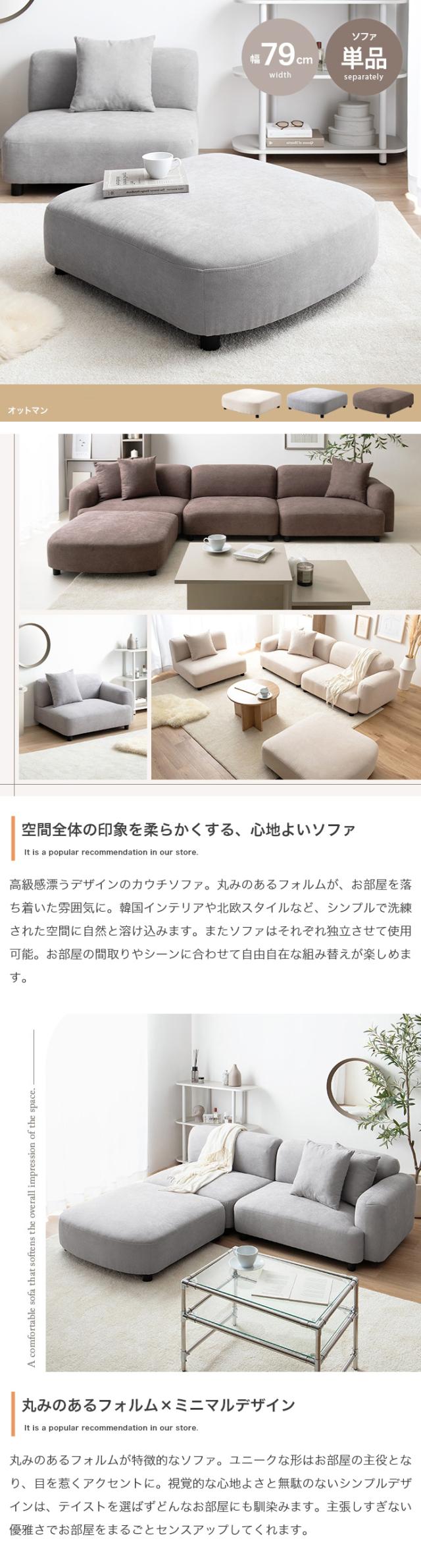 オットマン WASS アイボリー グレー ブラウン 布張り 脚取外し カウチソファ ユニットソファ 自由自在にレイアウトが可能 一人掛け 北欧インテリア