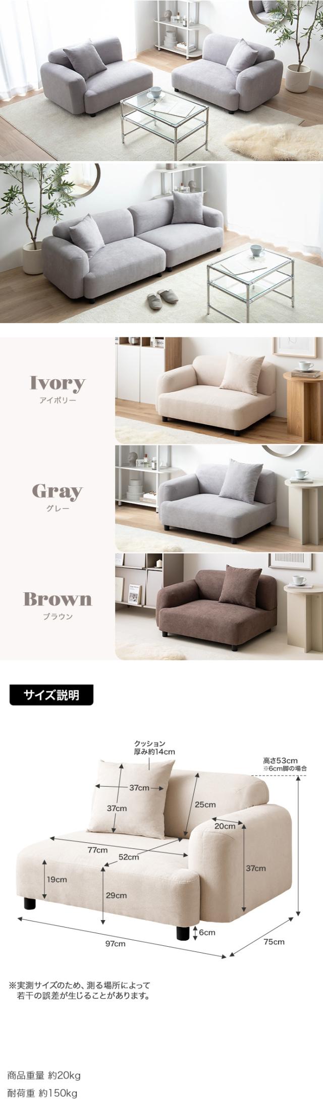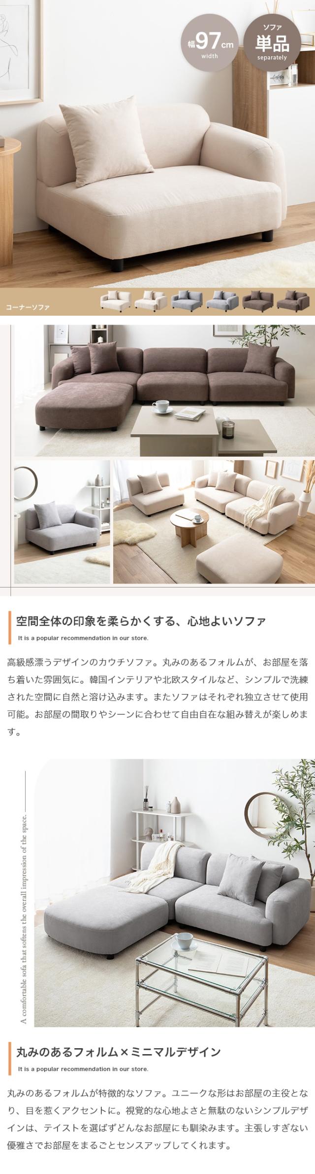 ソファー 1人掛け WASS コーナーソファ アイボリー グレー ブラウン 布張り 脚取外し カウチソファ ユニットソファ 自由自在にレイアウトが可能 一人掛け 北欧インテリア