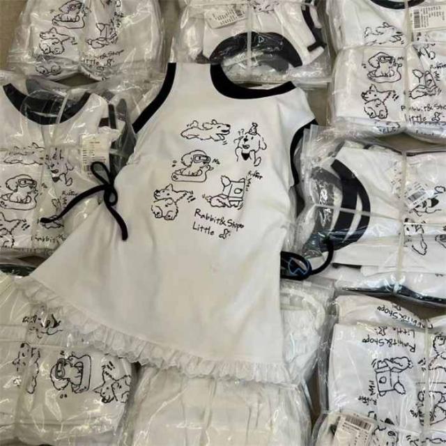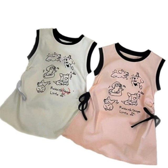 子供服 女の子 キッズ服 ワンピース プリント柄 犬柄 ベージュ ピンク お出掛け 夏 新作 可愛い 新品 韓国風 1-6歳