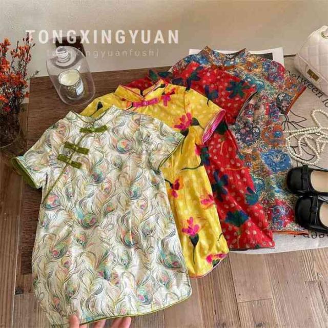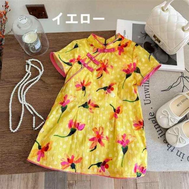 子供服 女の子 キッズ服 ワンピース チャイナ服 カラードレス 花柄 お出掛け 夏 新作 可愛い 新品 韓国風 1-6歳