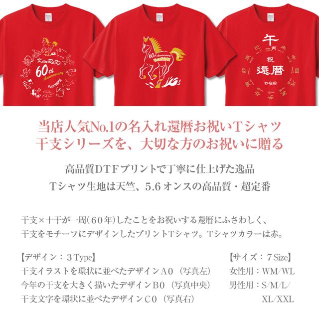 還暦祝いTシャツ、長寿祝Tシャツ、オーダーメイドプリントTシャツ、その他各種、販売しています。