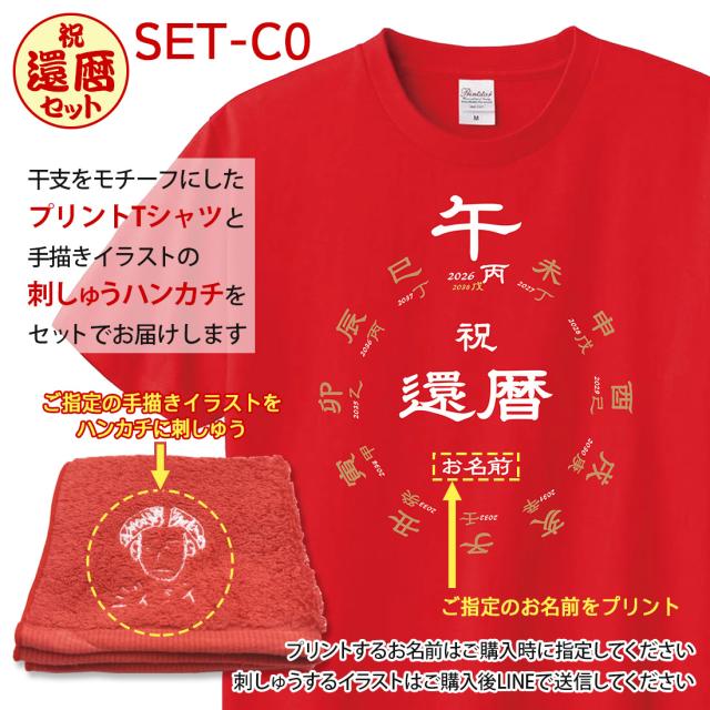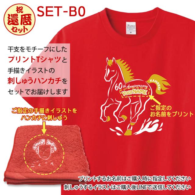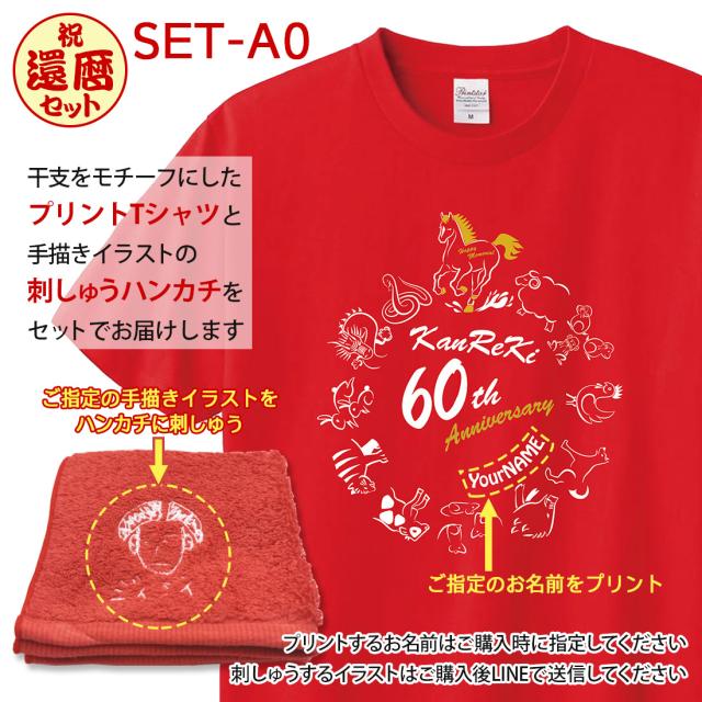 還暦祝 Tシャツ 刺しゅうハンカチ セット 干支-0シリーズ 名入れ 記念日 還暦 刺しゅう 今治タオル tシャツ プリント 60歳 お祝い 面白い おしゃれ プレゼント ラッピング メンズ レディース 男性 女性 父 母 上司 メール便 送料無料