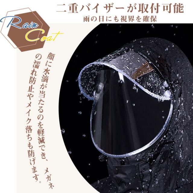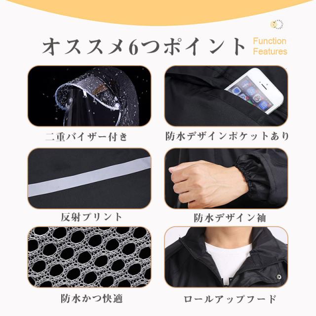 ヘルメットを被りながらフードを着用できるので、小学生、中学生、高校生の学校の自転車での通学用にお勧めです。こちらの商品は学生服の上から羽織れるので、学生用のレインウェアとして特にお勧めです。また、取り外し可能なフードは前が透明になっているので視界を妨げません。