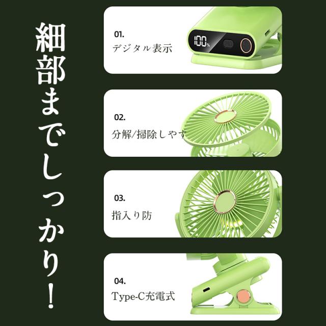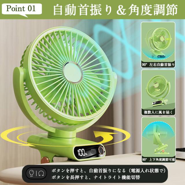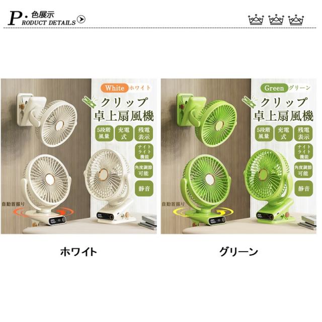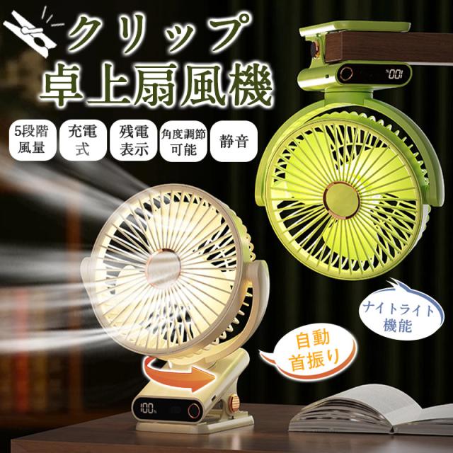 扇風機 クリップ 卓上 クリップ扇風機 デスクファン 卓上扇風機 小型扇風機 ミニ扇風機 首振り 角度調節 クリップファン 充電ケーブル付き 3枚羽根