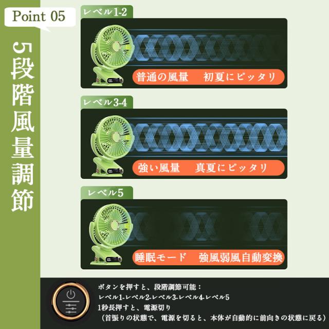 レベル5:睡眠モード、弱い、強い風自動的に調節