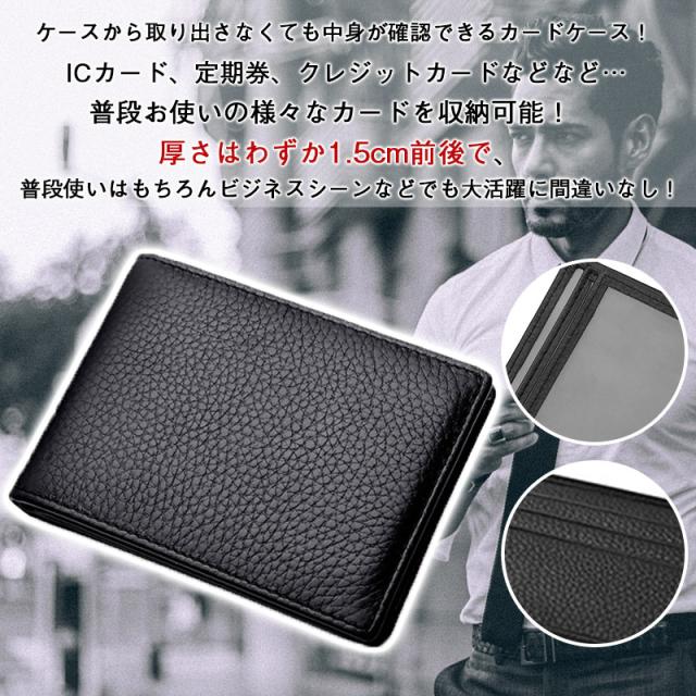 パスケース 定期 免許証 ケース入れ メンズ レディース 二つ折り 本革 革 透明 薄型 ICカード スリム ケース 通勤 通学 大容量 学生 証明書