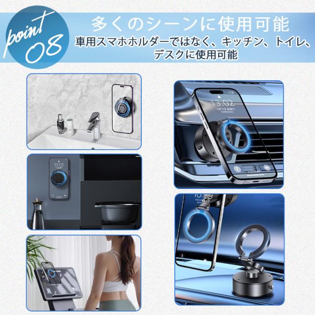 キーワード:全機種対応 スマホスタンド スマホホルダー スマホ車載ホルダー 携帯ホルダー 車載 車用 自動車 車 スマホスタンド マグネット 車載スタンド マグネット式 カーホルダー 重力 スマホ置き magsafe車載 360度回転 片手操作 安定 吸盤 超強吸着力 iphone スマホ 携帯ホルダー 車載 車用 自動車 重力 スマホ置き 簡単操作