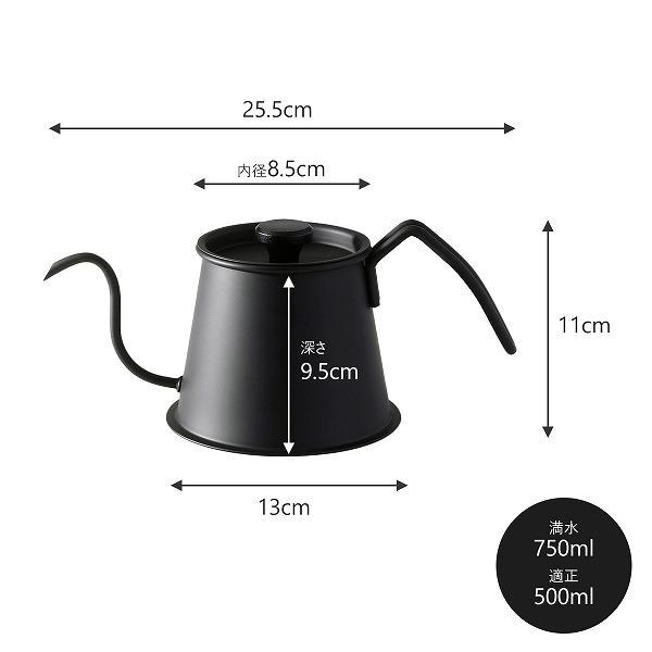 珈琲考具 ツードリップ ポット Pro MATTE BLACK 500ml ポット ケトル IH対応 細口 おしゃれ ドリップポット ハンドドリップ コーヒーポット 下村企販 KOGU プレゼント 日本製 珈琲考具 コーヒー マットブラック 黒