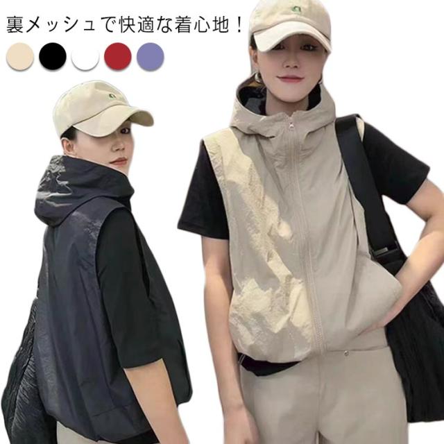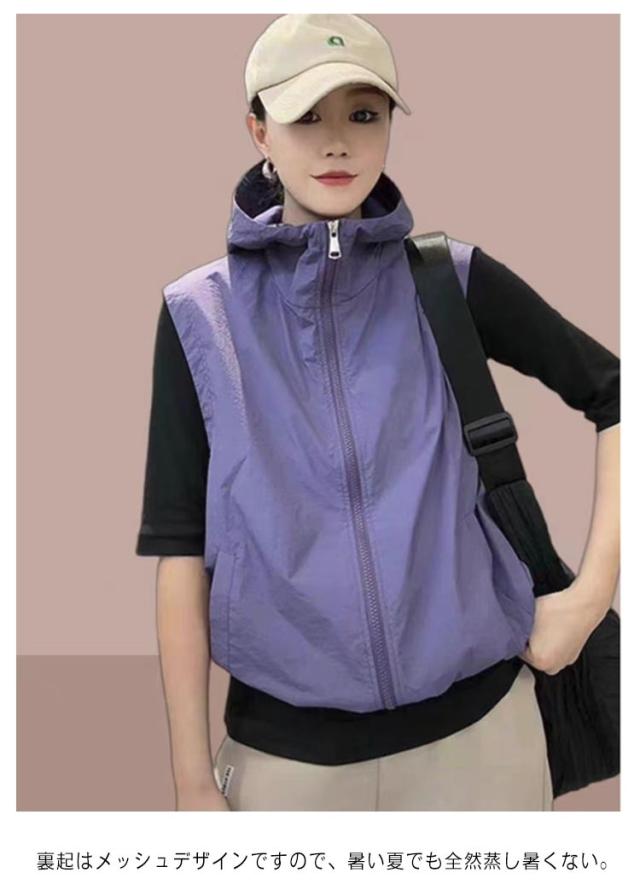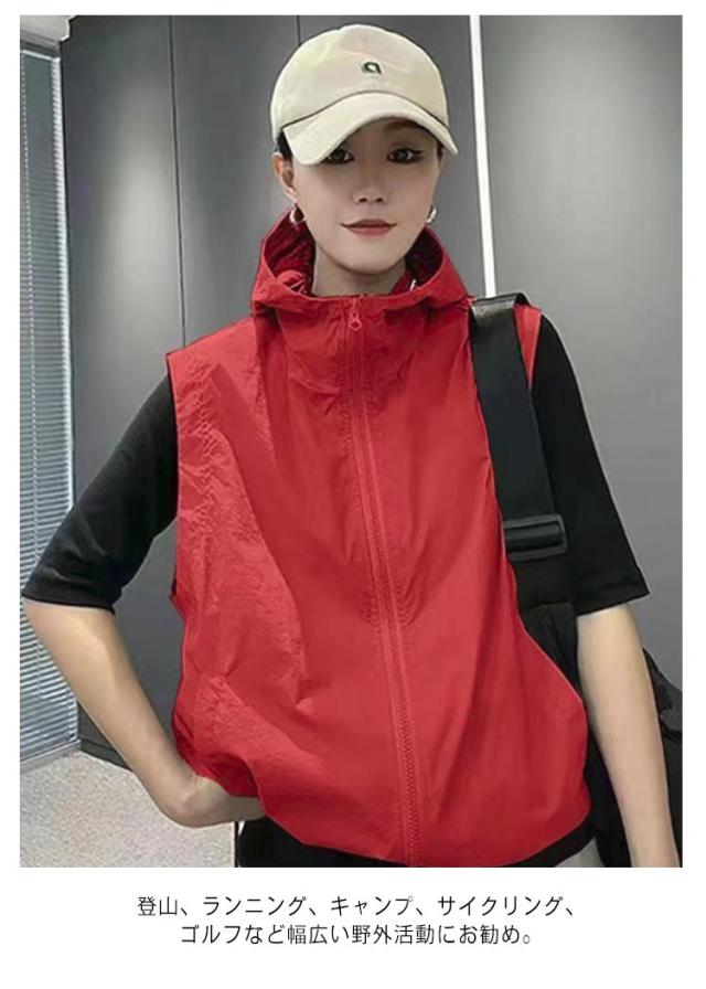 スポーツベスト スポーツ ベスト レディース 速乾 軽量 アウトドア フード付き カジュアル 薄手 ファスナー 作業着 フード付きベスト ジップアップ ポケット付き 夏 通気 涼感 お釣り 多機能 山歩き 登山服 送料無料 おしゃれ ノースリーブ 無地 シンプル 送料無料