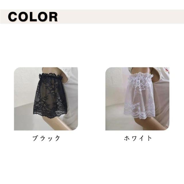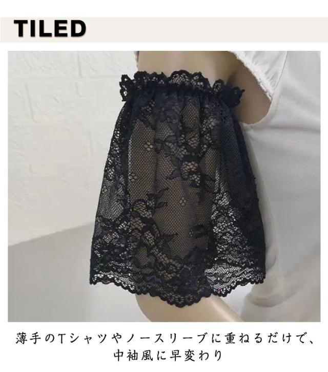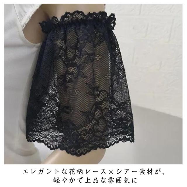 | レース切り替えつけ袖 薄手のTシャツやノースリーブに重ねるだけで、中袖風に早変わり 気になる二の腕もレースでふんわりカバー 透け感が美しいレース&メッシュ切り替え エレガントな花柄レース×シアー素材が、軽やかで上品な雰囲気に 袖口にはさりげないフリル&ゴム入り仕様で、快適なフィット感 洗練された透かしレースの優雅さで、着こなしに差がつく 日焼け防止、冷房対策、ファッションアクセントに大活躍! | |