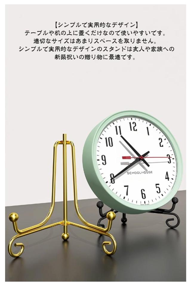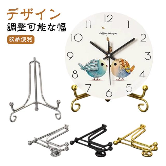 時計スタンド 掛け時計 置き時計 スタンド アイアン 皿立て 皿たて 絵皿 写真立て 本立て 額縁 展示 ディスプレイスタンド 飾り台 プレートスタンド 折りたたみ 三角形 クロックスタンド 時計用スタンド シルバー ゴールド ブラック おしゃれ 玄関 キッチン 高級感