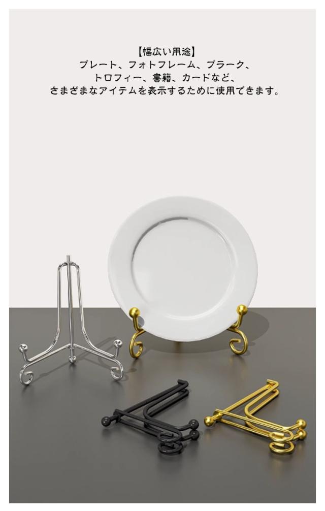 | 【デザイン】アイアンの素材感を巧みに活かした、シンプルなデザインが印象的なプレートスタンドです。お気に入りの絵画や写真を飾ったり、またアートボード、商業施設とお店などディスプレイとしてご利用ください。 【サイズ】4/6/8/10インチサイズがあります。使用ニーズに合わせてご選択いただけます。 【調整可能な幅】2本脚の間の幅は、さまざまなサイズのアイテムに合うように開き角度を調整できます。家庭、ビジネス、またはショールームでの使用に適したシンプルなデザイン。 【収納便利】使わない時は折りたたんで場所を取らず収納に便利な仕様になっております。また、軽量なので持ち運びもしやすいです。 【シンプルで実用的なデザイン】テーブルや机の上に置くだけなので使いやすいです。適切なサイズはあまりスペースを取りません。シンプルで実用的なデザインのスタンドは友人や家族への新築祝いの贈り物に最適です。 【高品質】材質がアイアンを採用しております、耐久性、頑丈ですし、しっかりした素材なので、安定性など良好な性質を備えています。作動が安定しており、正確で信頼性が高くなっています。長時間使用に耐えます。 【幅広い用途】プレート、フォトフレーム、プラーク、トロフィー、書籍、カードなど、さまざまなアイテムを表示するために使用できます。 | |