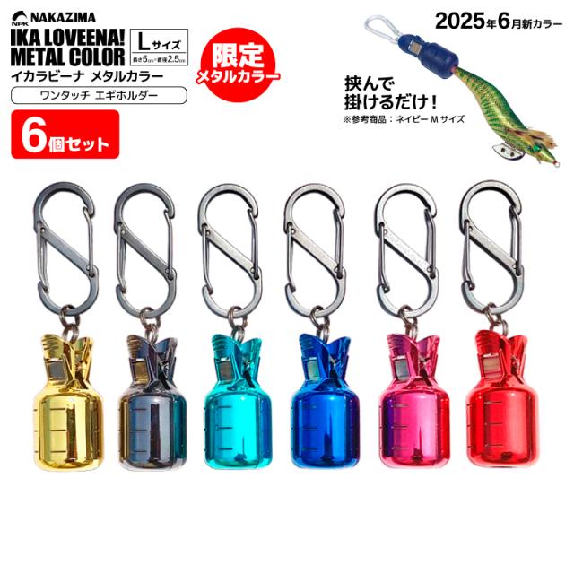 イカラビーナ メタルカラー Lサイズ 6個セット カラビナ付 エギケース 釣り エギホルダー カンナカバー エギ針カバー アオリイカ エギング ナカジマ