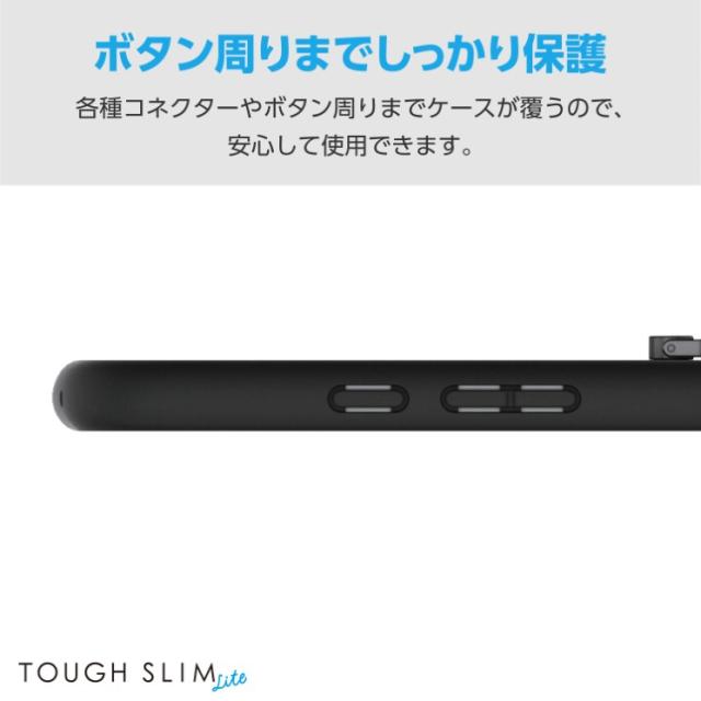 全周に配置した独自設計のエアークッションが衝撃を吸収し、背面には高硬度の特殊樹脂を採用した落下防止リング付きのTOUGH SLIM LITEケースです。