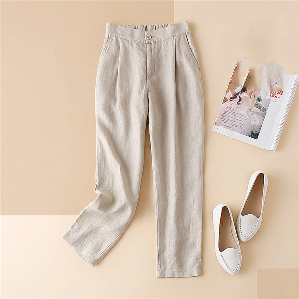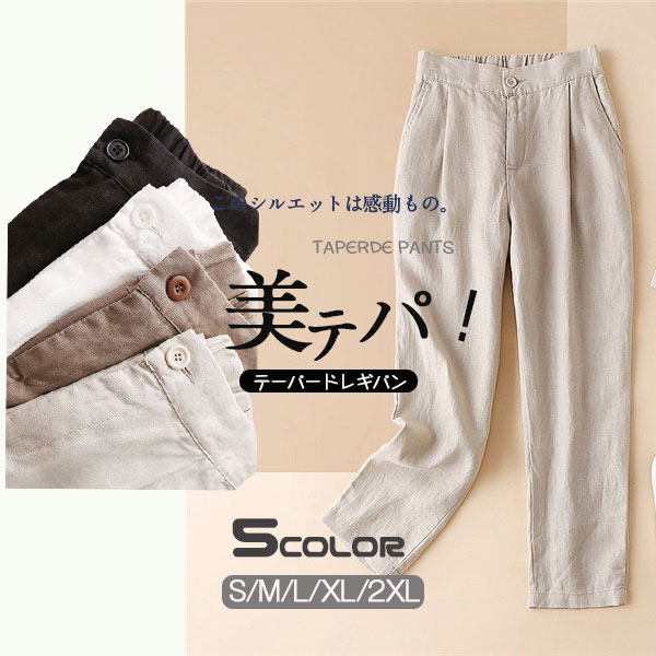テーパードパンツ パンツ レディース リネン ボトムス ストレッチ 美脚 シンプル 体型カバー 無地 楽ちん 仕事 大きいサイズ 通勤 通学 OL