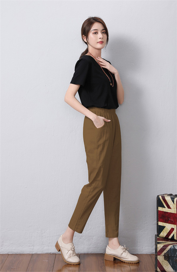 テーパードパンツ リネン レディース きれいめ 大きいサイズ 体型カバー 綿麻 ボトムス ウエストゴム ストレッチ 着やせ 美脚 シンプル おしゃれ