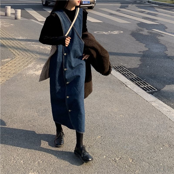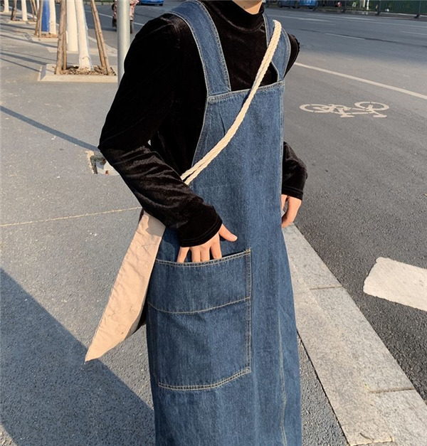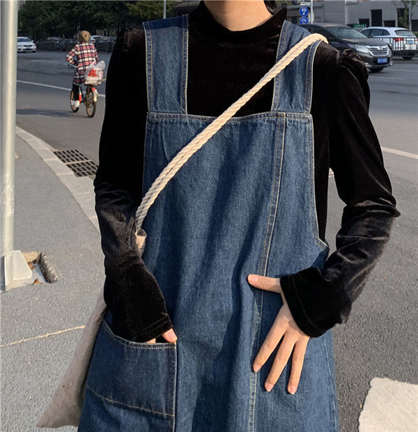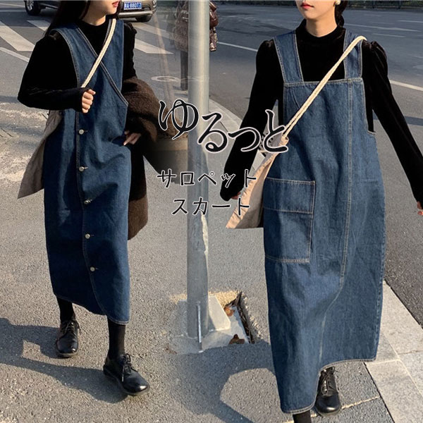 デニム サロペット スカート ワンピース レディース オールインワン ジャンパースカート ポケット付き シンプル ロング丈 無地 体型カバー ゆったり