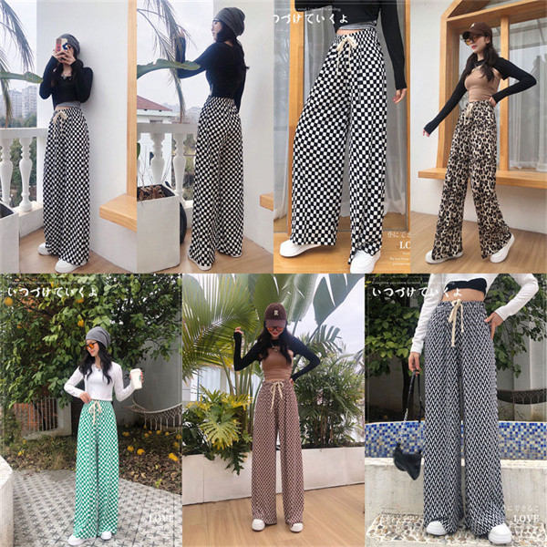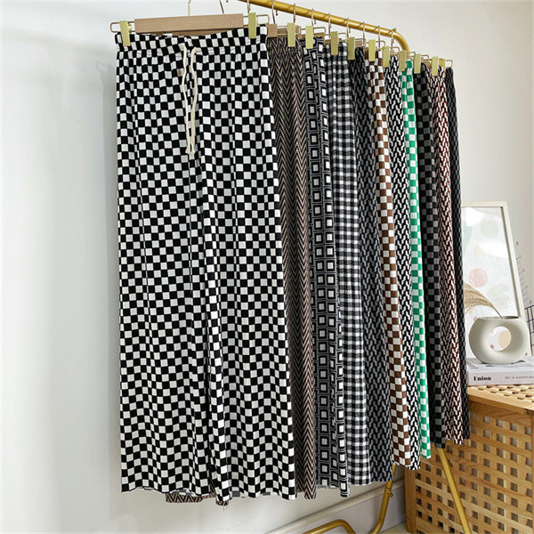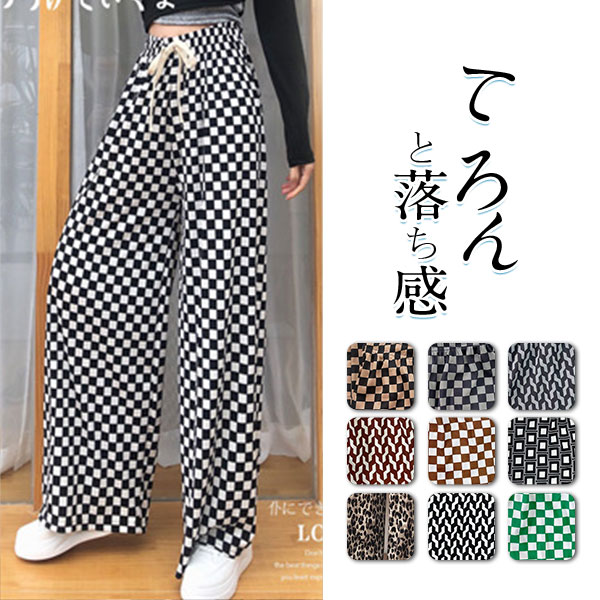 超目玉 ワイドパンツ レディース 接触冷感 チェック柄 ひんやり パンツ スカーチョ 体型カバー カジュアル ゆったり 夏 とろみ 着痩せ