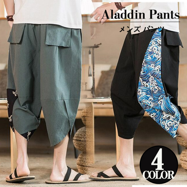 【キーワード】メール便 送料無料 綿麻パンツ メンズ サルエルパンツ ワイド リネン 薄手 快適 カジュアル ゆったり 涼しい 冷感 薄手 イージーパンツ メンズ アラジンパンツ ウェストゴム アンクルパンツ クロップドパンツ メンズファッション