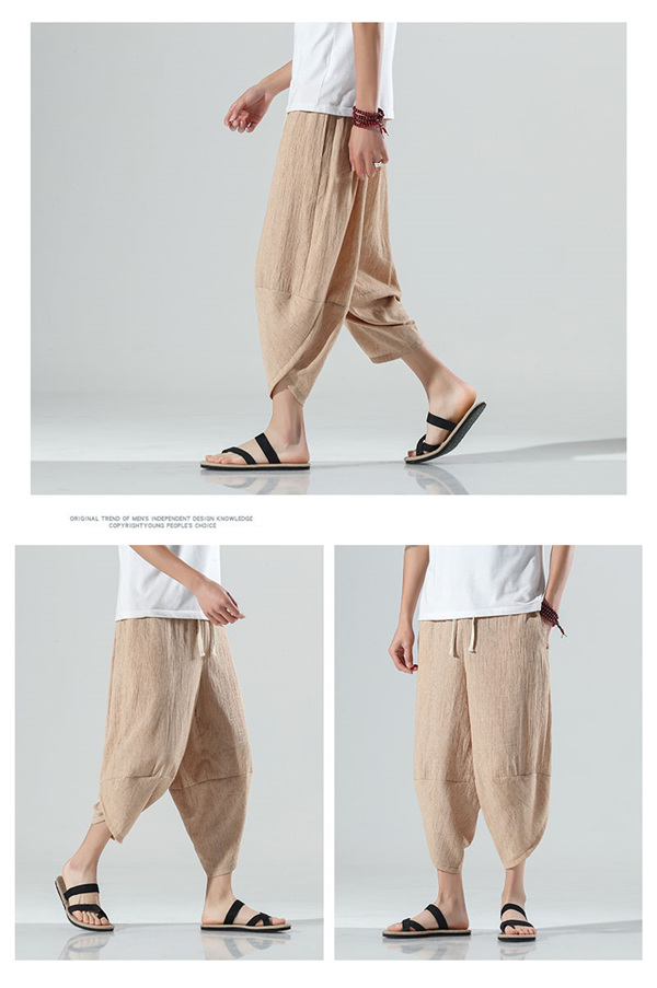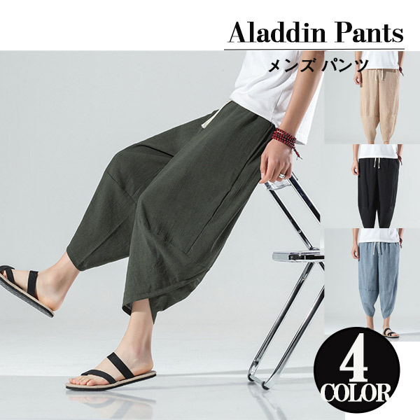 【キーワード】メール便 送料無料 綿麻パンツ メンズ サルエルパンツ ワイド リネン 薄手 快適 カジュアル ゆったり 涼しい 冷感 薄手 イージーパンツ メンズ アラジンパンツ ウェストゴム アンクルパンツ クロップドパンツ メンズファッション